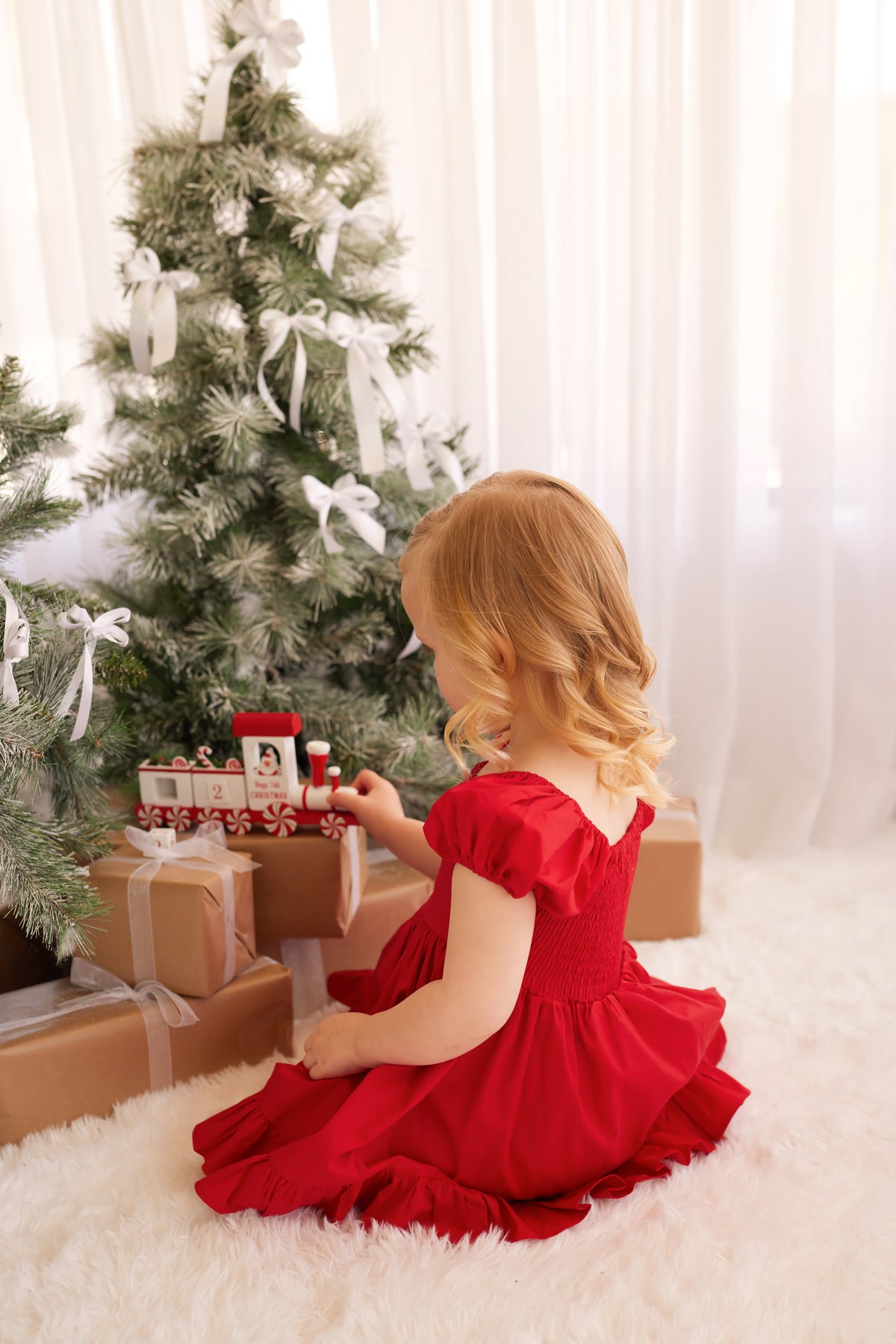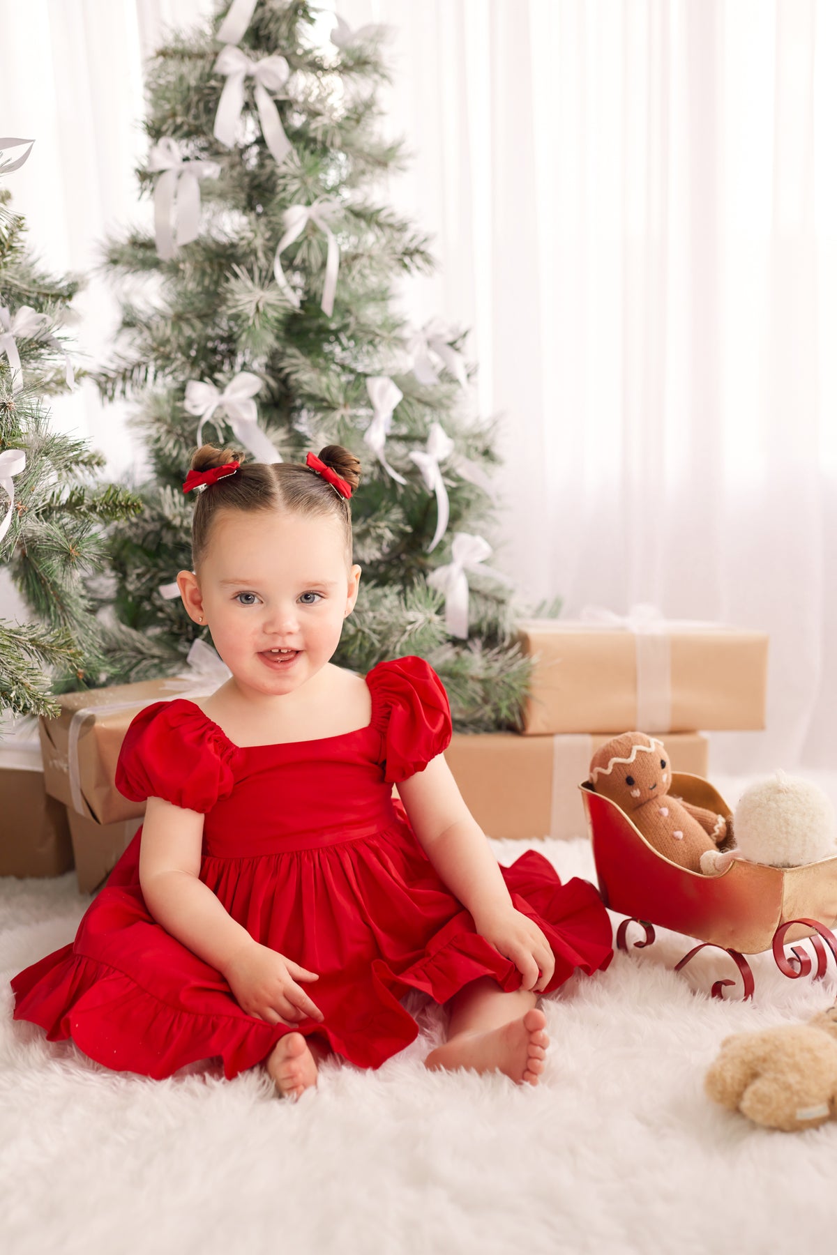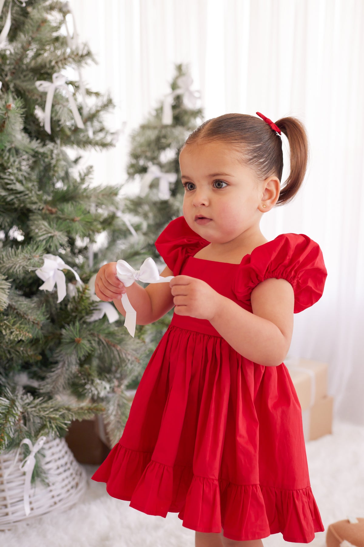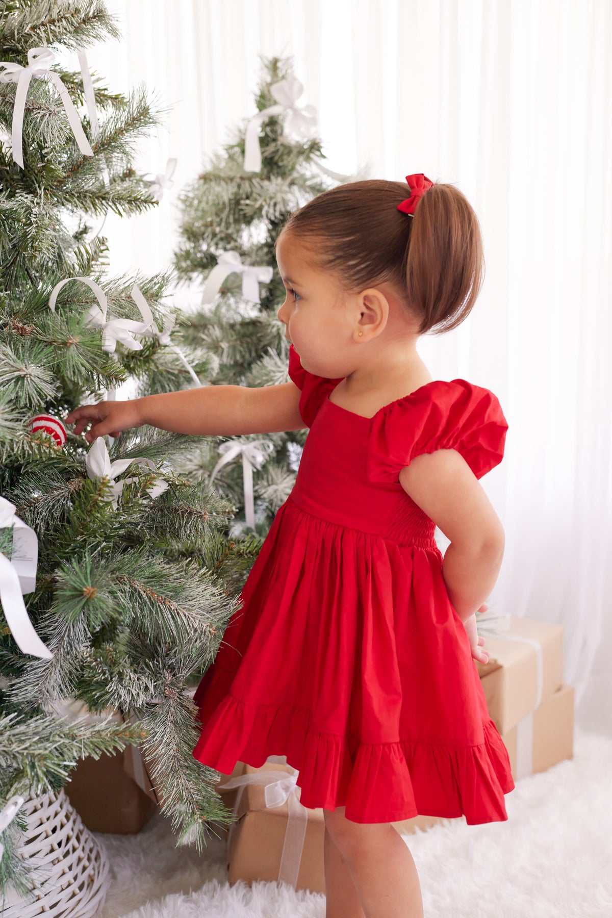 Puff Sleeve Dress - Red