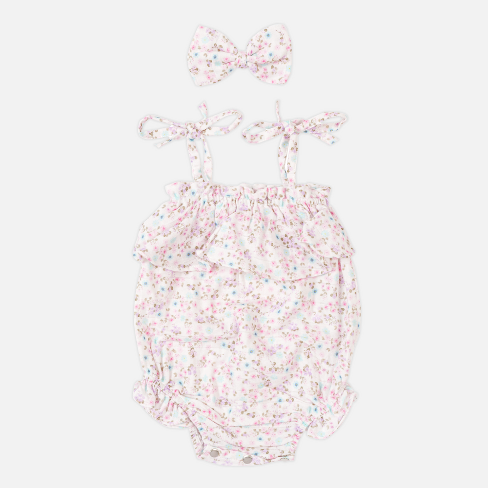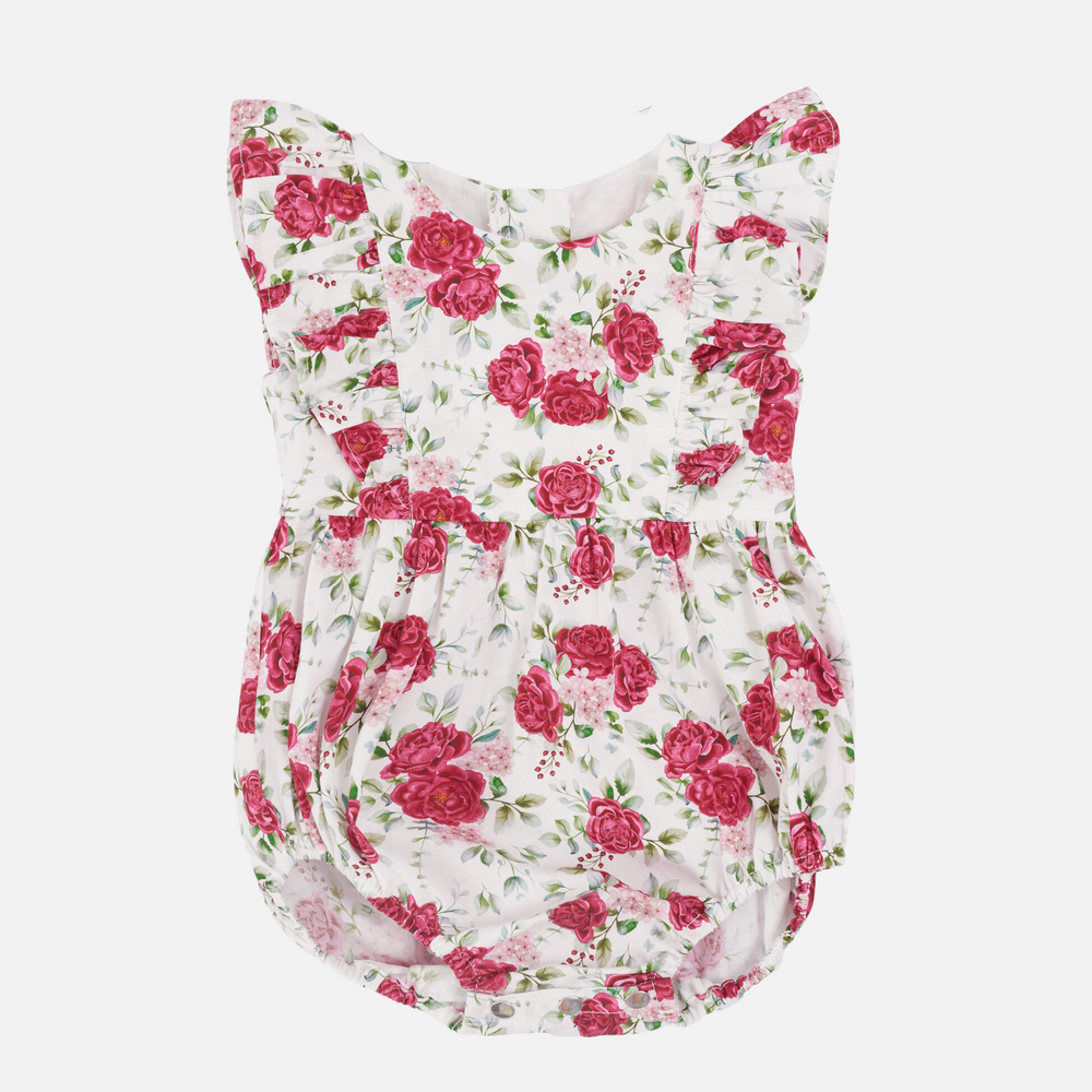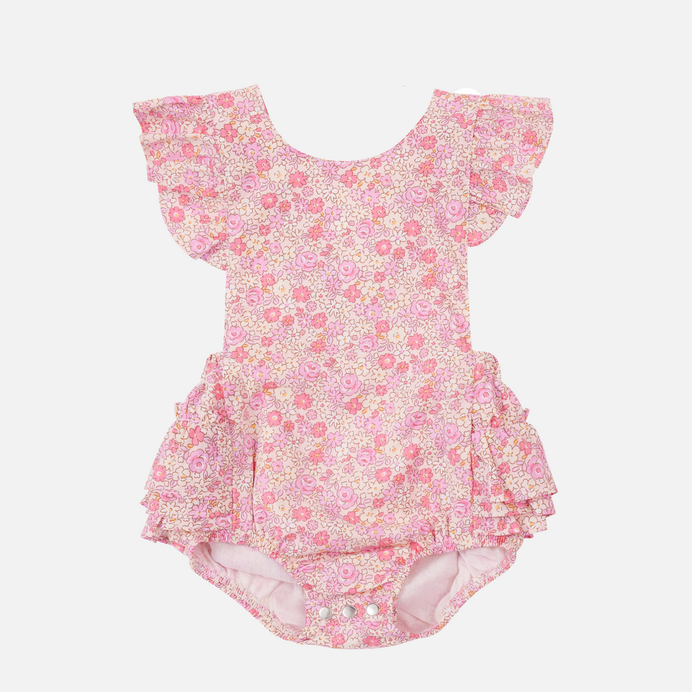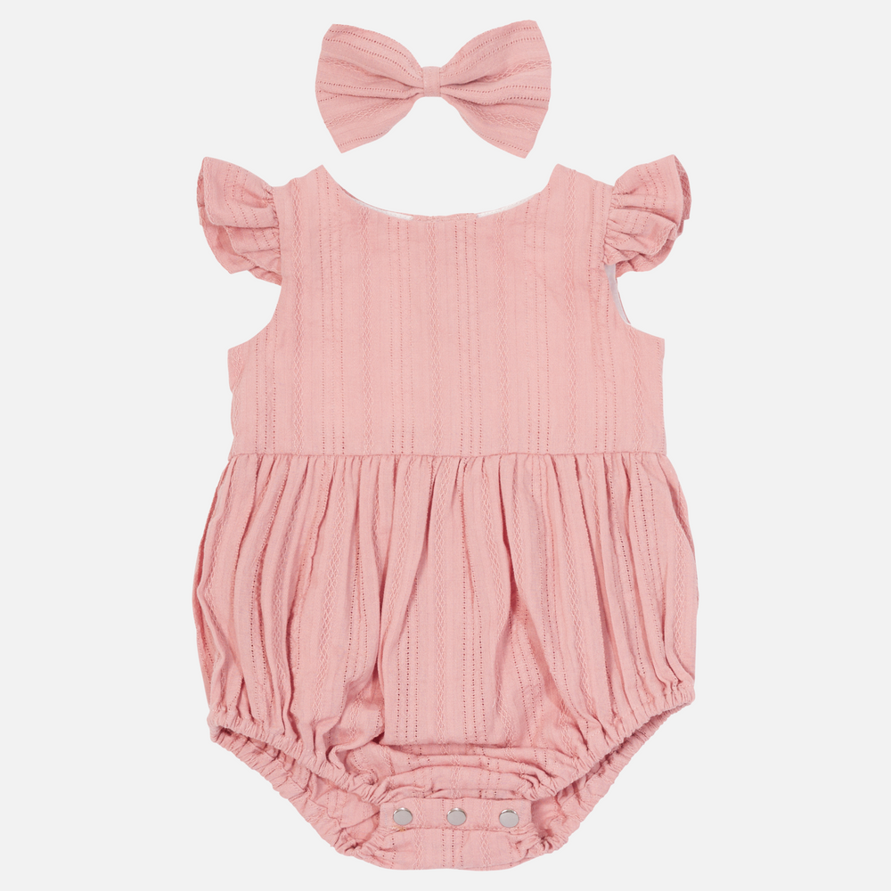 Cozy Summer Frilly Zip Romper - Pink Christmas Village