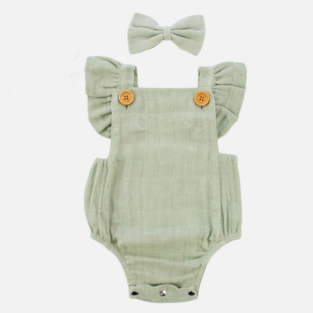 Short Sleeve Zipper Romper - Gingham Gingerbread