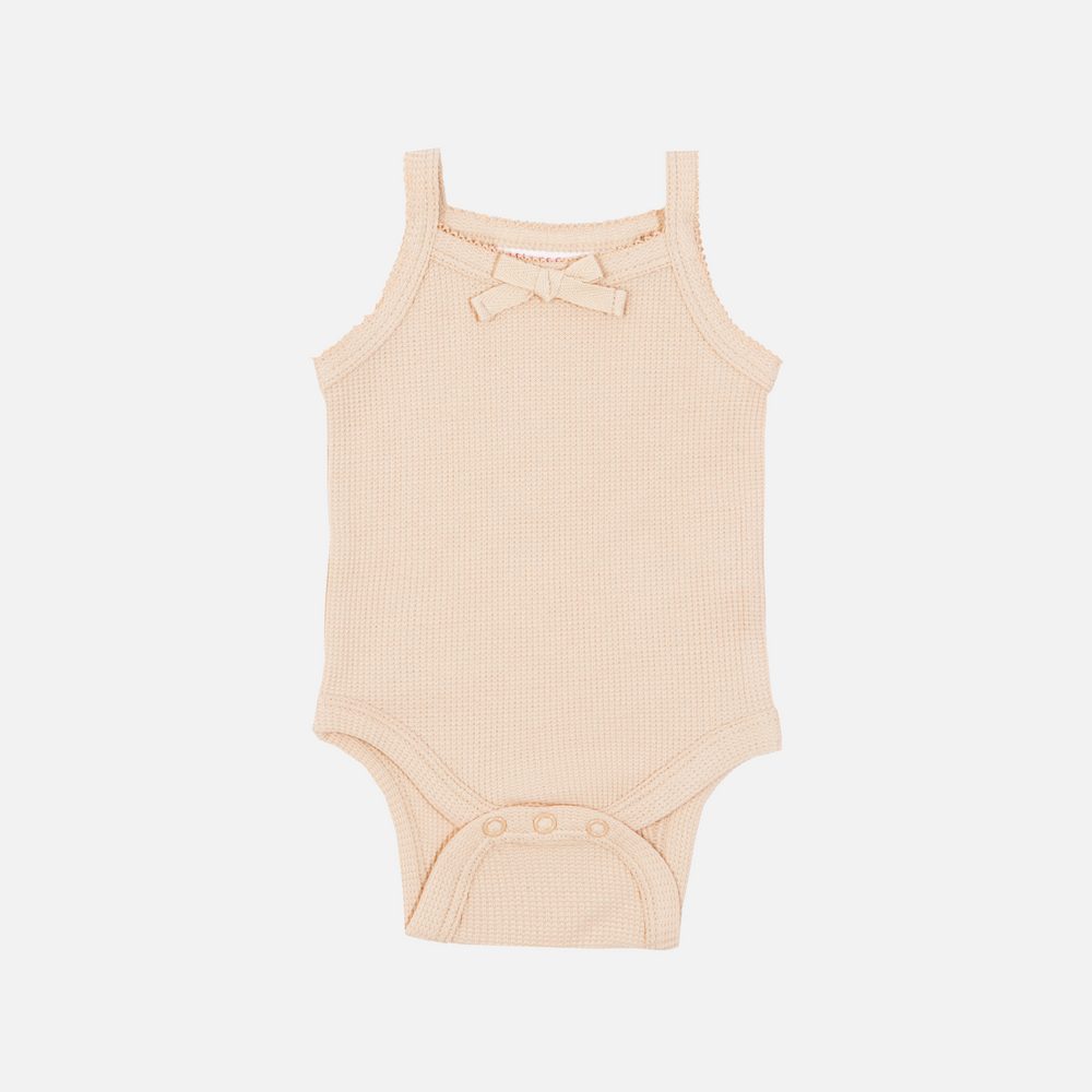 Waffle Dainty Singlet & Shorties Set - Peach Dust
